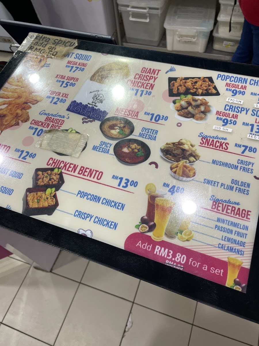 Introducing Squid Boy U Sentral Segamat, an exciting culinary destination located in the heart of Segamat, Johor Darul Ta'zim. This vibrant restaurant specializes in an array of mouthwatering dishes, primarily featuring their renowned Crispy Giant Squid in varying sizes, from Super XXL to Mega King. The Bento Series presents a delightful selection, including options like Giant Squid and Crispy Chicken, perfect for a fulfilling meal.